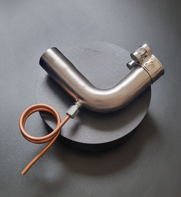 Die Krümmer sind aus V2A oder V4A mit 2mm Wandstärke in 90° und zwei unterschiedlichen Schenkellängen erhältlich. Die Anschlüsse passen auf alle gängigen Modelle mit 24mm Abgasstutzen. Der Kondensatablauf ist aus 4mm Kupferrohr gefertigt. bei Interesse einfach eine Mail an Diese E-Mail-Adresse ist vor Spambots geschützt! Zur Anzeige muss JavaScript eingeschaltet sein! senden.